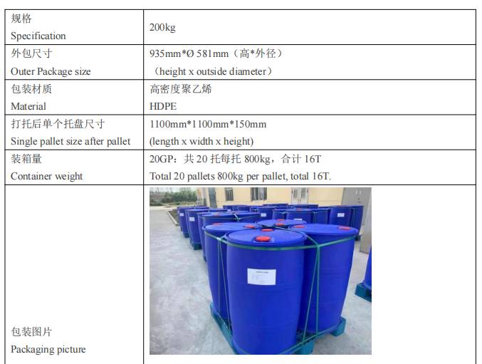 There are three packaging forms to choose, including 200 Kg HDPE Drum,